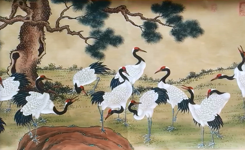 郎世宁百鹤图(局部)